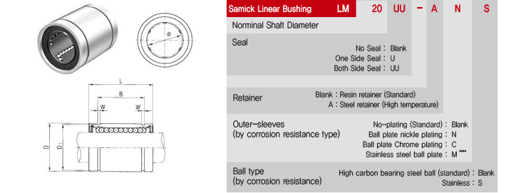 Get Samick Linear motion bearings from Korea LM5 to LM80 in Resin Material and LM5A to LM25A