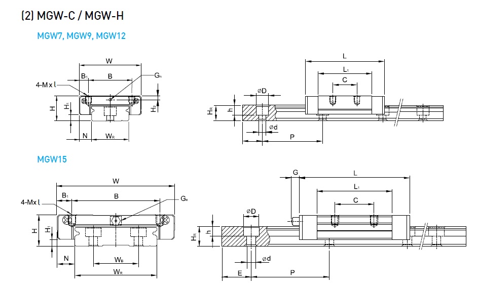 Available MGW7C , MGW9C , MGW12C , MGW15C in standard Block and MGW7H , MGW9H , MGW12H , MGW15H in Long Block